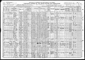 This sheet of the 1910 census in Grand Rapids (USA) lists predominantly residents who were born in the Netherlands. For each person is noted what profession they practiced, whether they spoke English and if they had any education. 1910 United States Federal Census through Ancestry.