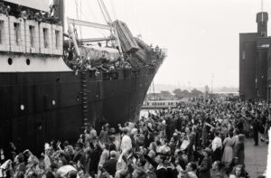 Departure of ship ‘Tabinta’ with emigrants for South Africa, October 2, 1948. Anefo via National Archives / Public Domain.