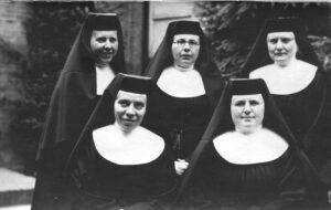 Er bestaat een foto van vijf nonnen, genomen rond 1940. In het midden staan drie zussen; Beate, Vitalis en Veneranda. Ingetogen en ernstig, anoniem bijna, alsof hun wereldse leven nooit bestaan heeft. Maar achter die kloosterlijke namen schuilen meisjes die ooit werden geboren als Martha, Cornelia en Johanna, dochters van een Haagse timmerman en een moeder uit Wassenaar. Drie kinderen telde het gezin, en toen zij vetrokken naar het Ursulinenklooster in Bergen bleven vader Johannes Boogmans en moeder Huberta Ammerlaan samen achter in Den Haag waar zij kort na elkaar, in 1957, overleden. De zussen kwamen thuis bij hun hemelse Vader eind jaren ’90 van de vorige eeuw, op de gezegende leeftijd van resp. 82, 87 en 89 jaar.