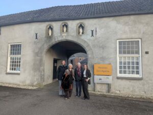Hélène Oppatja op bezoek bij het klooster Sint Agatha. (vlnr) Hella Timmermans (provinciearchivaris BHIC), Hélène Oppatja, Marleen Reichelt en Marga Arendsen (Erfgoedcentrum voor Nederlands Kloosterleven).