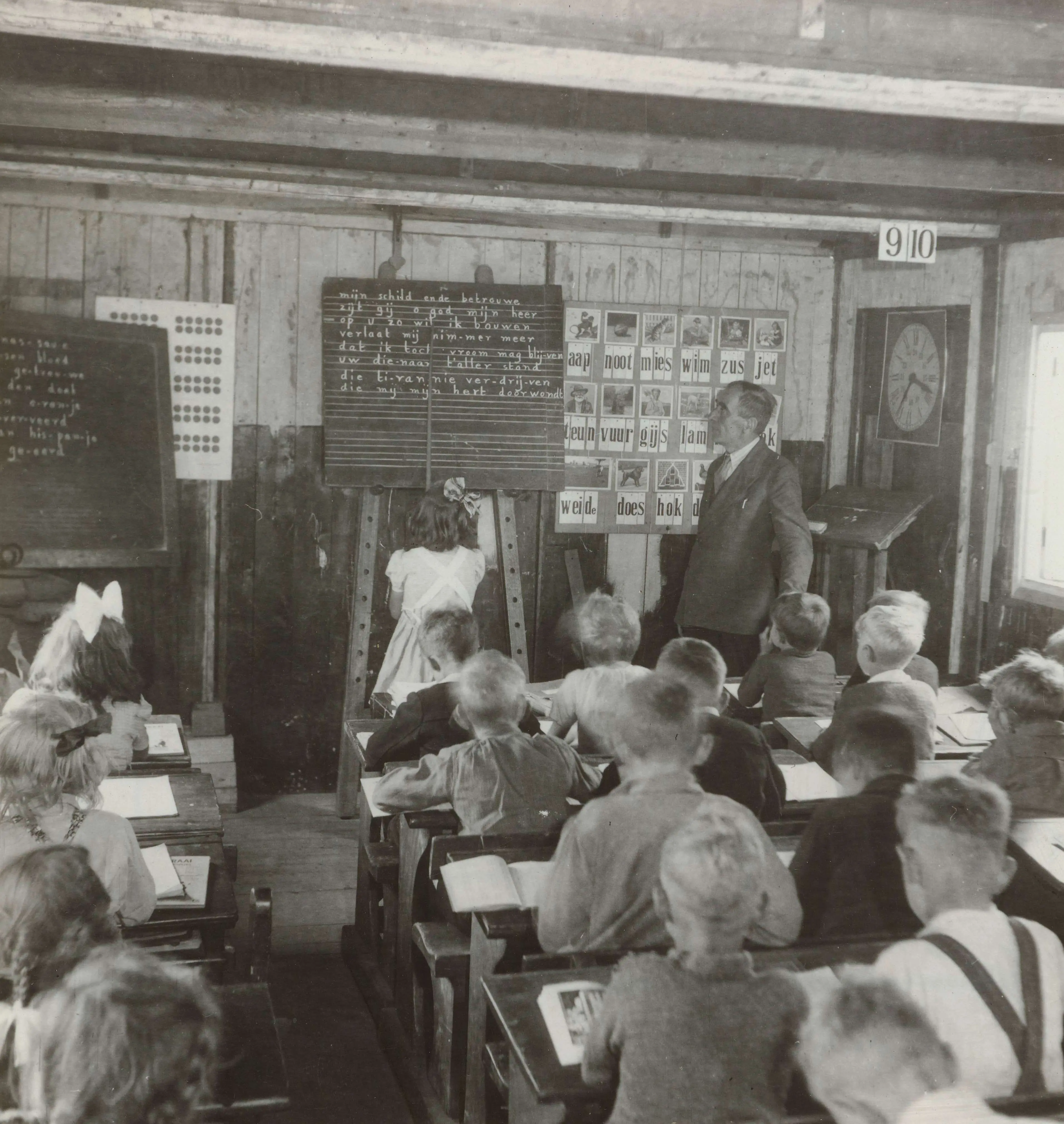 Groep kinderen in een klaslokaal in de periode 1945-1947. Coll. Rijksmuseum