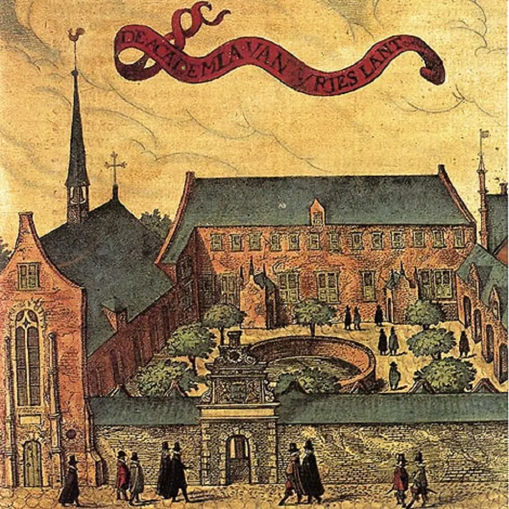 De Universiteit van Franeker, oftewel de Academie van Friesland. Schilderij van Pieter Feddes van Harlingen (1586-ca. 1623)