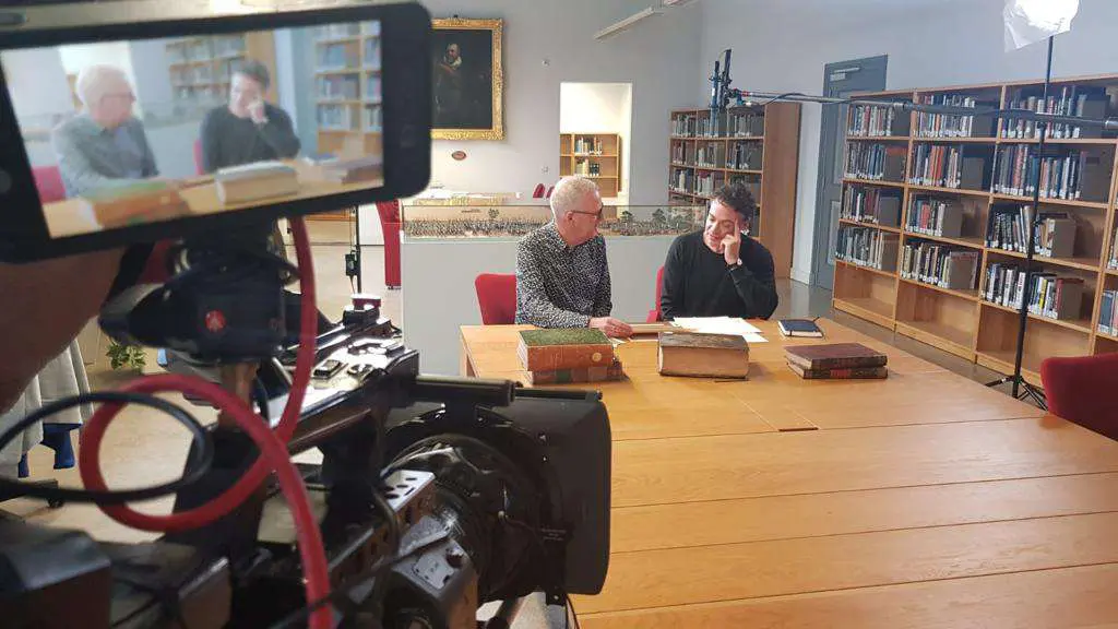 Fedja van Huêt in gesprek met Rob van Drie, Hoofd Expertise bij het CBG. Foto: NTR/Blazhoffski