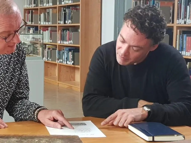 Fedja van Huêt in gesprek met Rob van Drie, Hoofd Expertise bij het CBG. Foto: NTR/Blazhoffski
