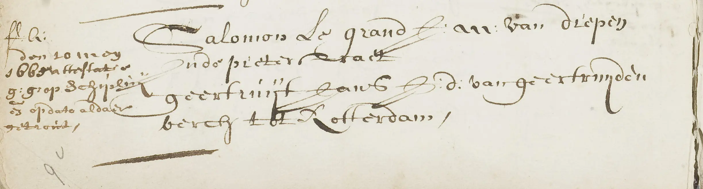 Ondertrouwinschrijving van Salomon le Grand, de broer van Jonas, die afkomstig was uit Dieppe (coll. Stadsarchief Delft)