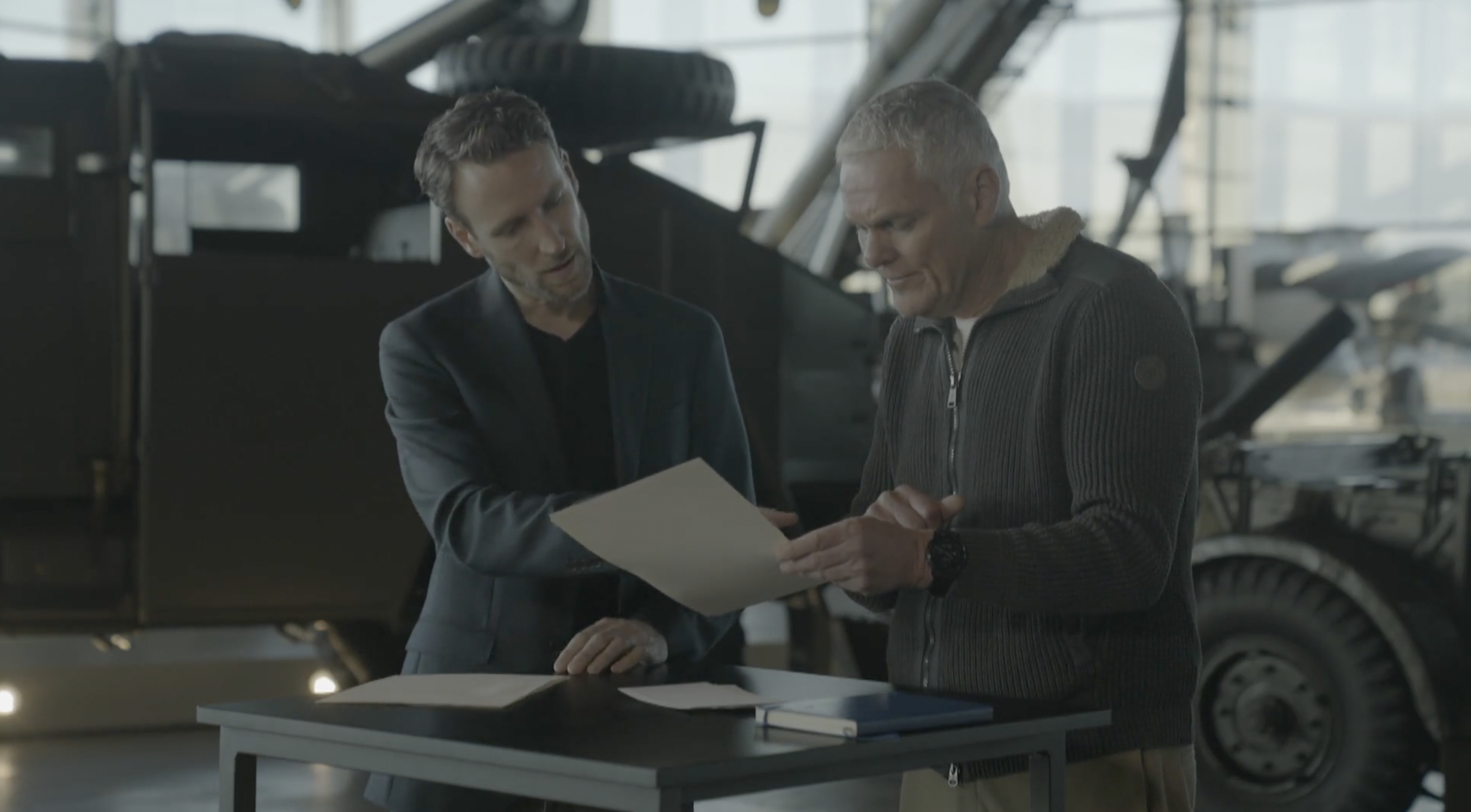 Joep van Deudekom in gesprek met Azarja Harmanny, militair historicus bij het Nederlands Instituut voor Militaire Historie. Foto: NTR/BlazHoffski.