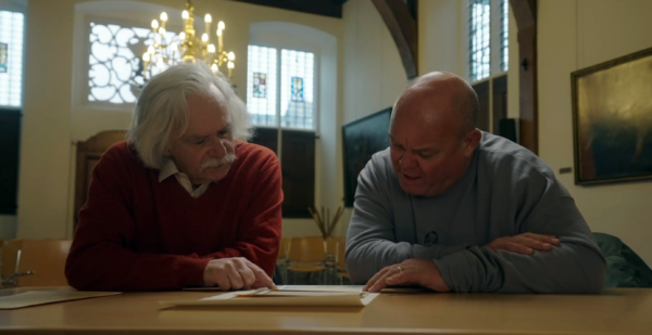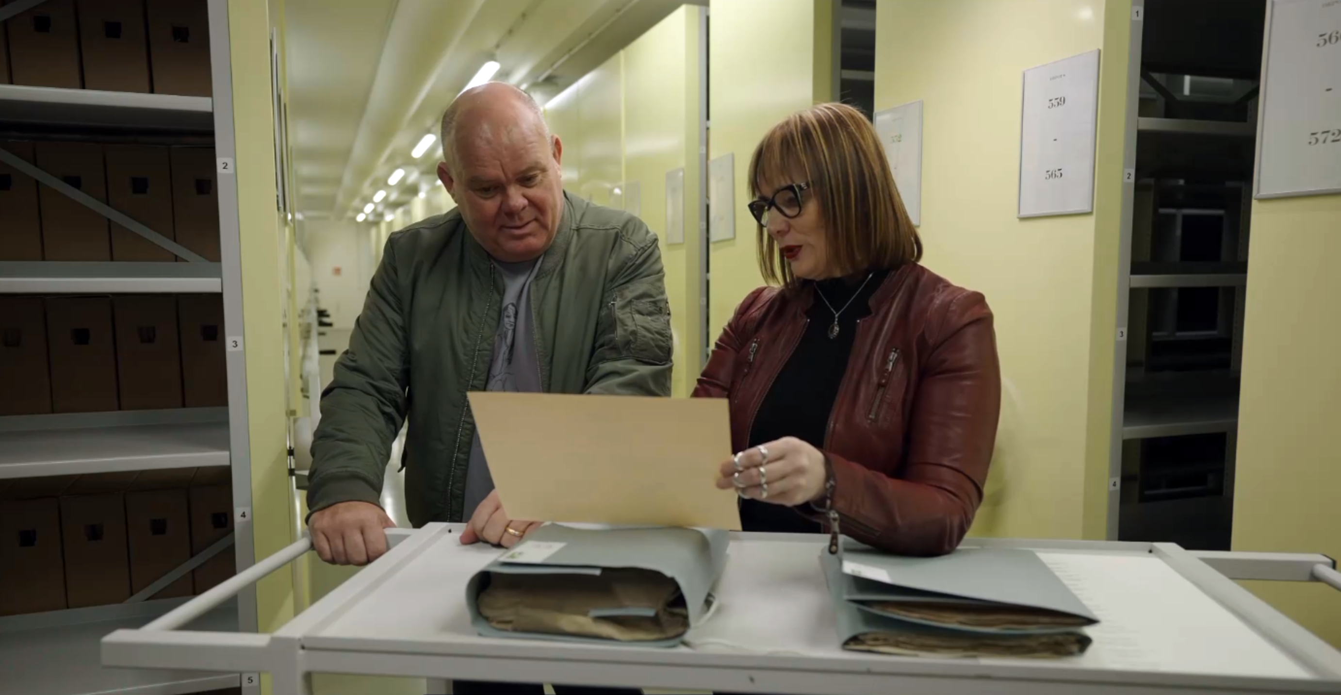 Paul de Leeuw in Tiel met archivaris Ella Kok-Majewska. Foto: NTR/BlazHoffski