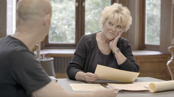 Simone Kleinsma met conservator Josephina de Fouw in het Rijksmuseum. Foto: NTR/Blazhoffski
