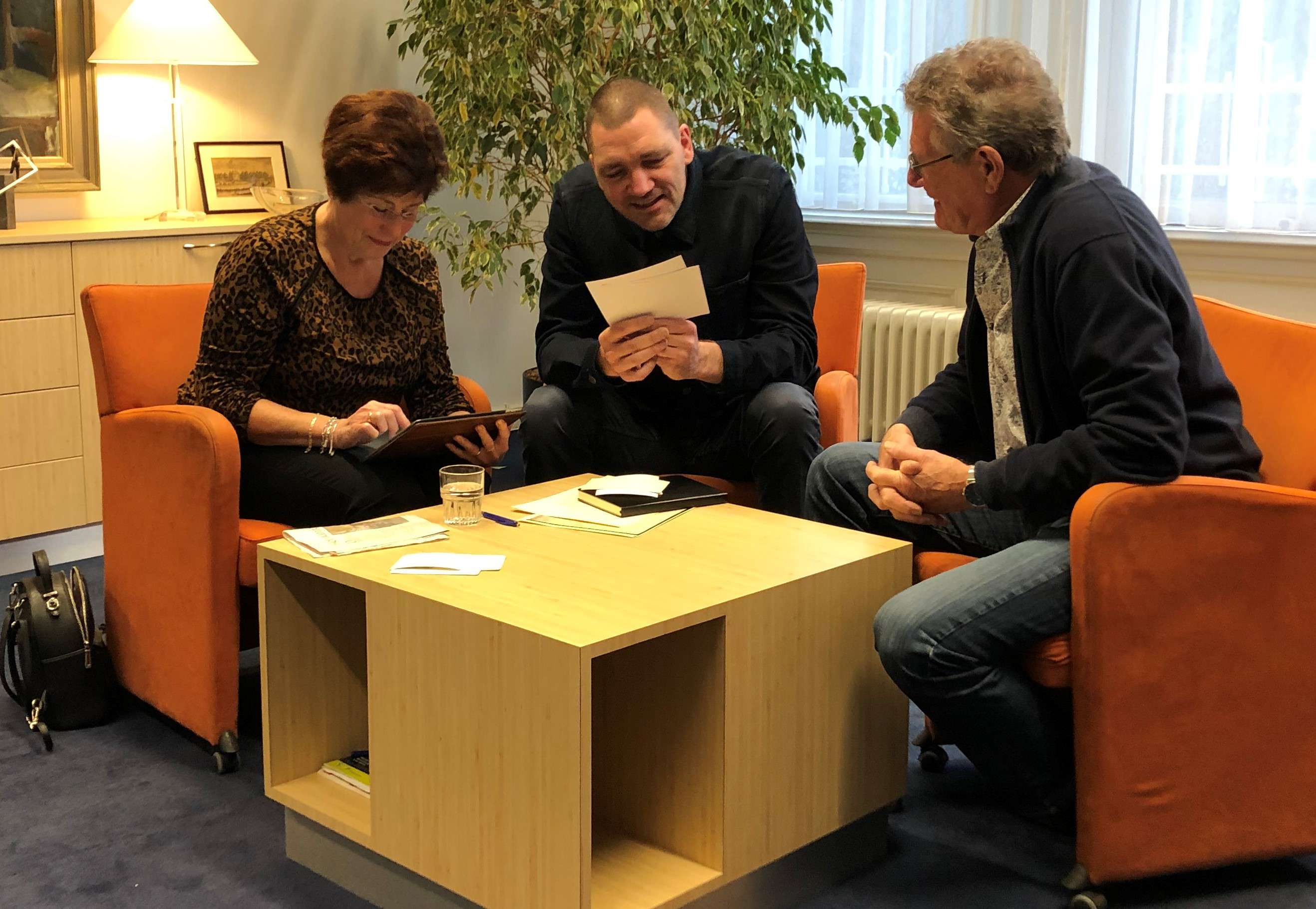 Zijn nieuw ontdekte neef laat Theo een foto van hun beider opa zien. Foto: NTR/Blazhoffski