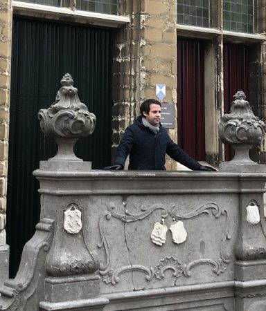 Victor Mids bij het oude stadhuis in Tholen. Foto Gemeente Tholen.